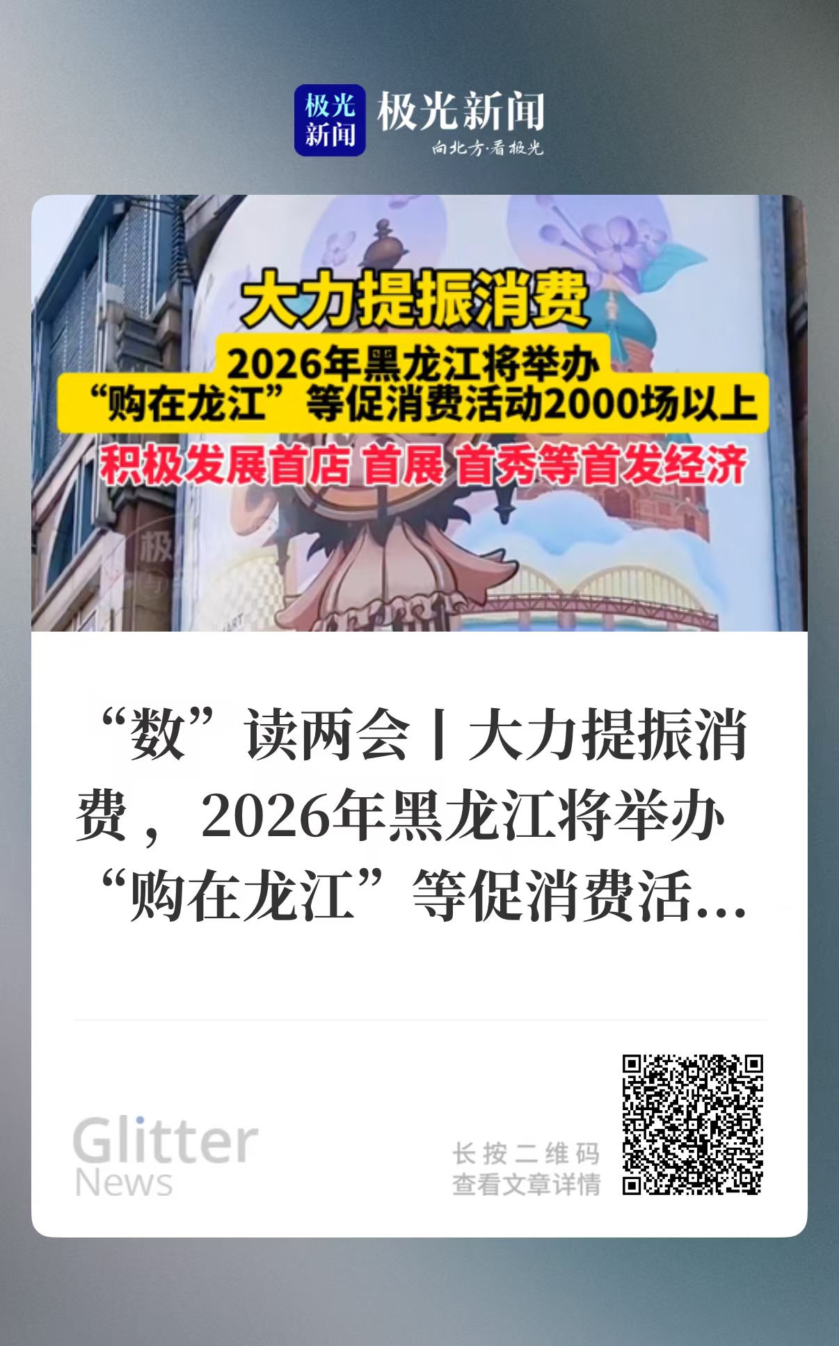 “数”读两会丨大力提振消费 ,2026年黑龙江将举办“购在龙江”等促消费活动2000场以上,积极发展首店、首展、首秀等首发经济