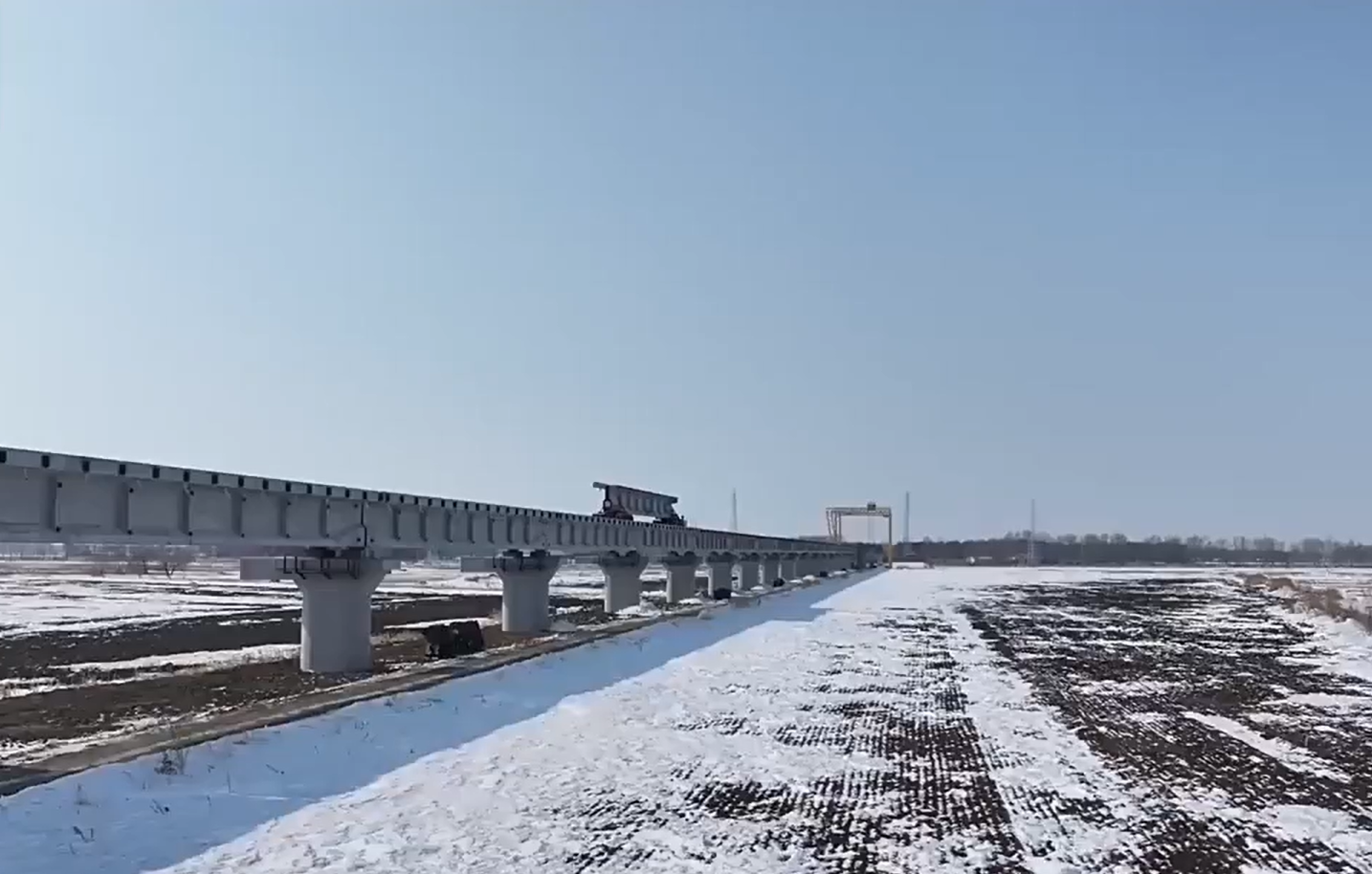 央媒看龙江丨开春开工!中欧班列“东通道”口岸段最长桥梁复工架设