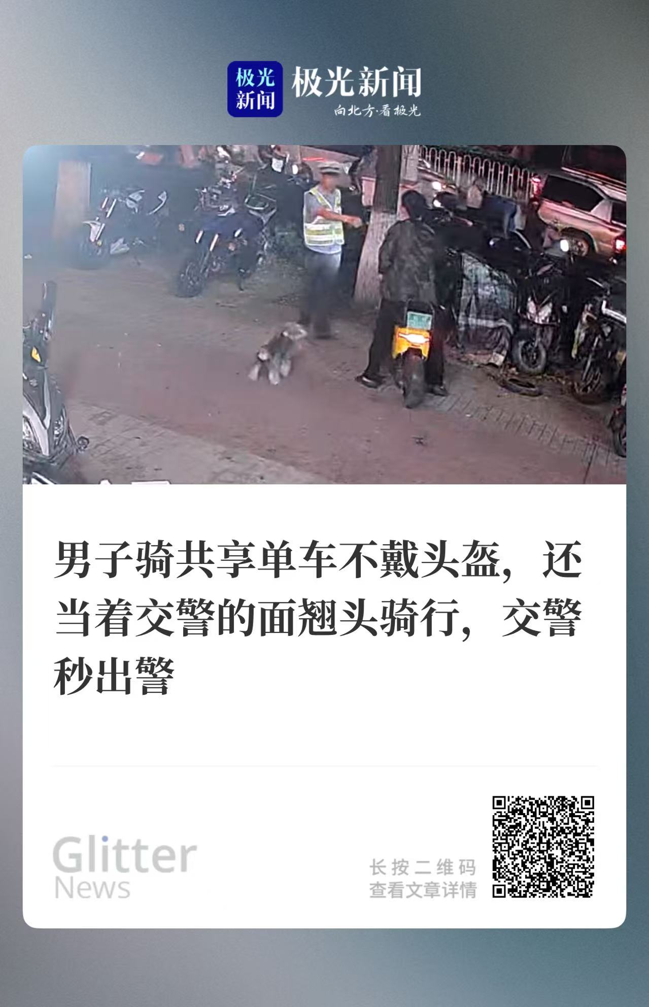 男子骑共享单车不戴头盔,还当着交警的面翘头骑行,交警秒出警