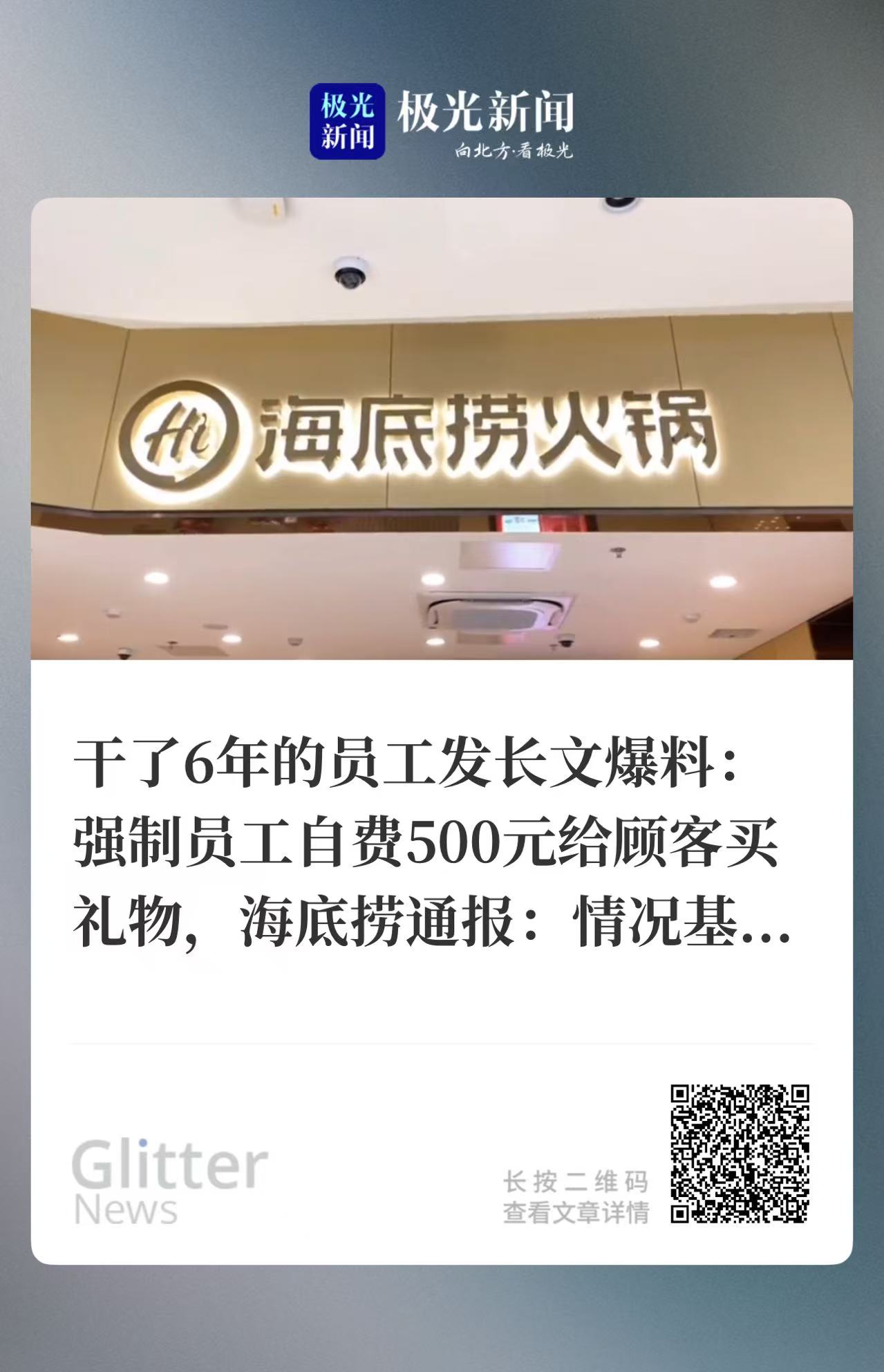 干了6年的员工发长文爆料:强制员工自费500元给顾客买礼物,海底捞通报:情况基本属实