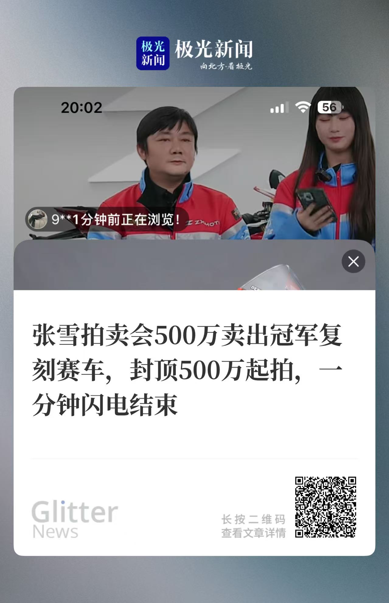 张雪拍卖会500万卖出冠军复刻赛车,封顶500万起拍,一分钟闪电结束
