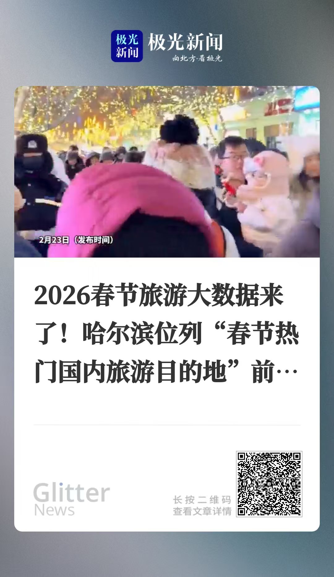 2026春节旅游大数据来了!哈尔滨位列“春节热门国内旅游目的地”前十,成为东北三省唯一上榜城市,冰雪主题景区订单量同比增长41%