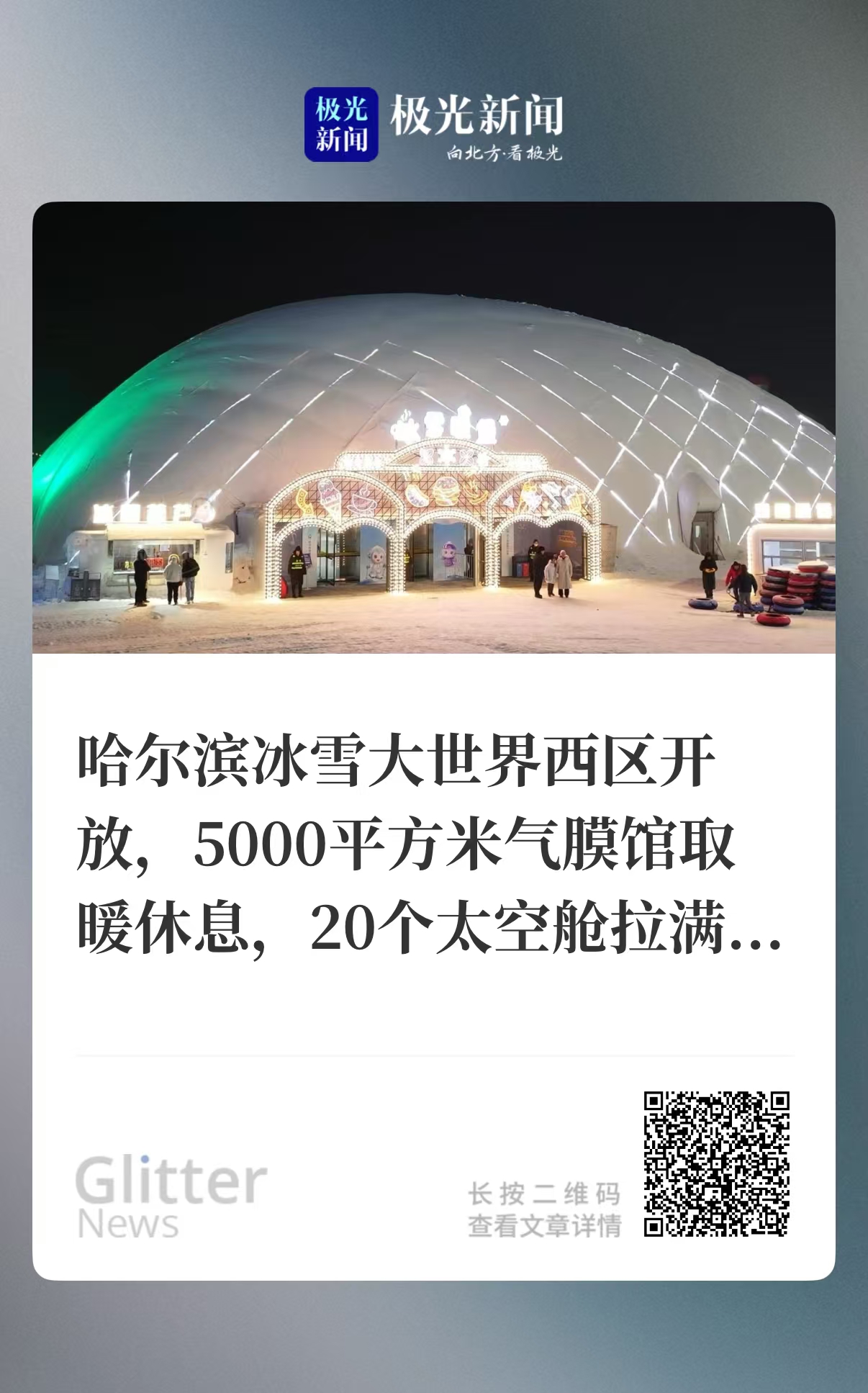 哈尔滨冰雪大世界西区开放,5000平方米气膜馆取暖休息,20个太空舱拉满住宿新体验,泡温泉、吃火锅、冰钓……全面!