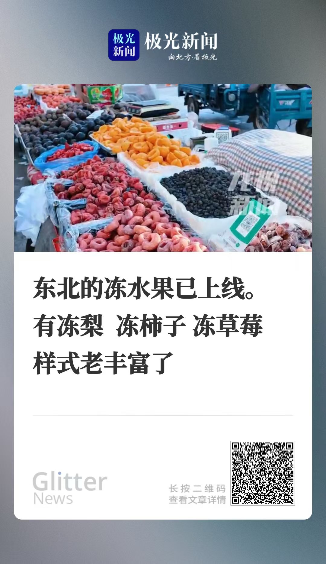东北的冻水果已上线。 有冻梨 冻柿子 冻草莓 样式老丰富了